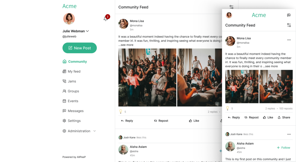 “Switching to AllPeeP allowed us to take full control of our community, something we’ve wanted to accomplish for years. We have a unique philosophy and culture, so it’s important that they live through our environment and platform. AllPeeP gives us the customization options to set the tone for our community. It is a game changer!”